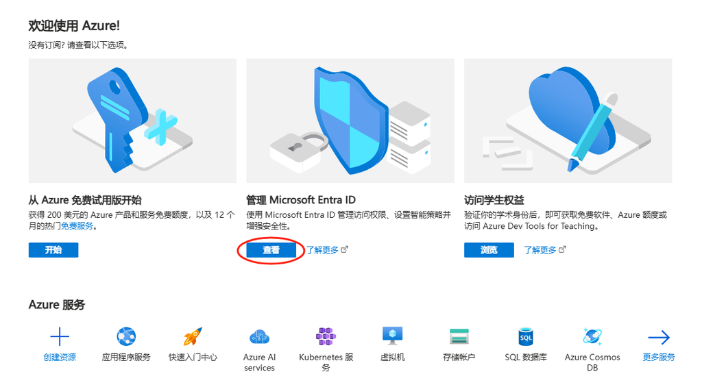 - 打开这个网址https://portal.azure.com/#view/Microsoft_AAD_IAM/ActiveDirectoryMenuBlade/~/Overview